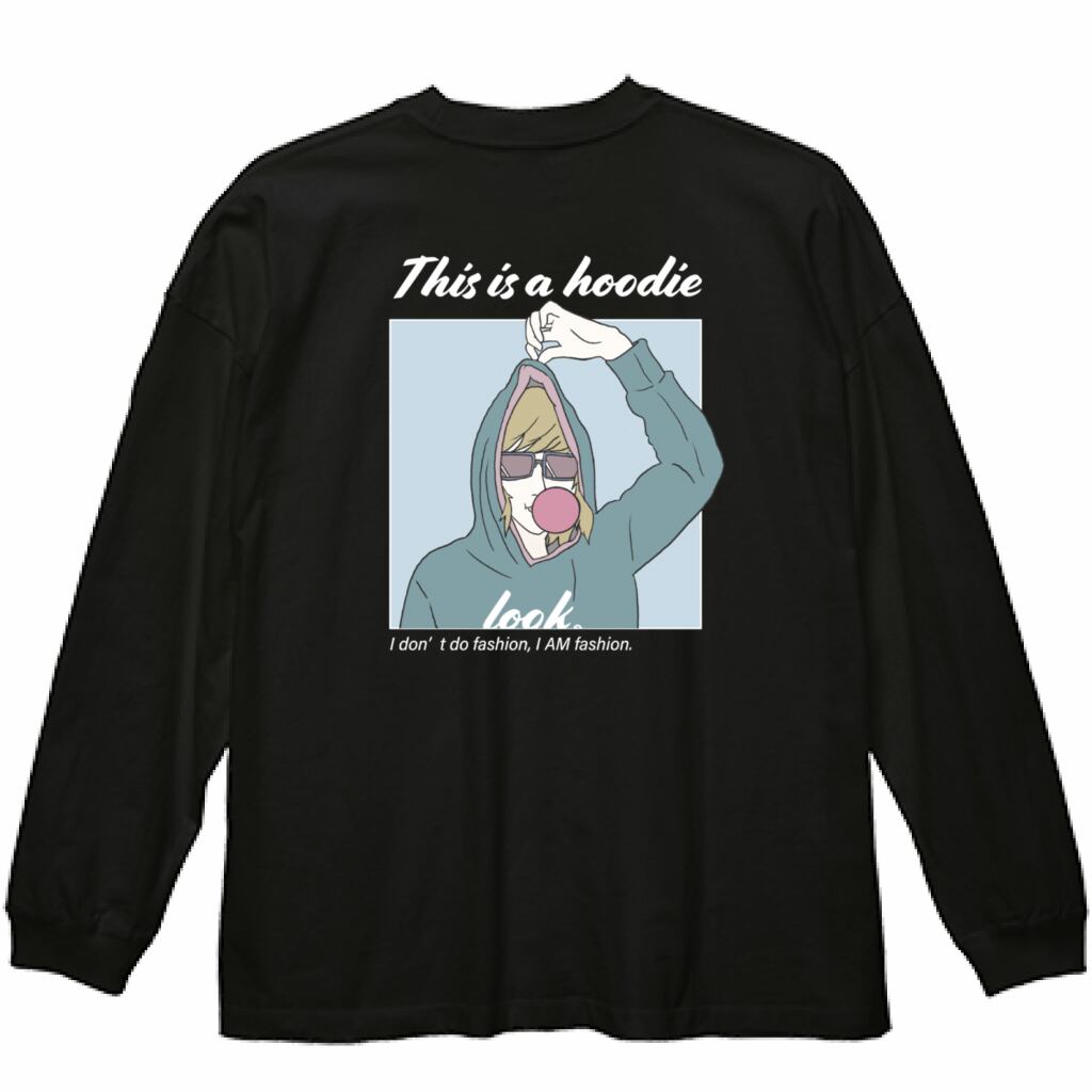 ビッグシルエット長袖Tシャツ「This is a hoodie」